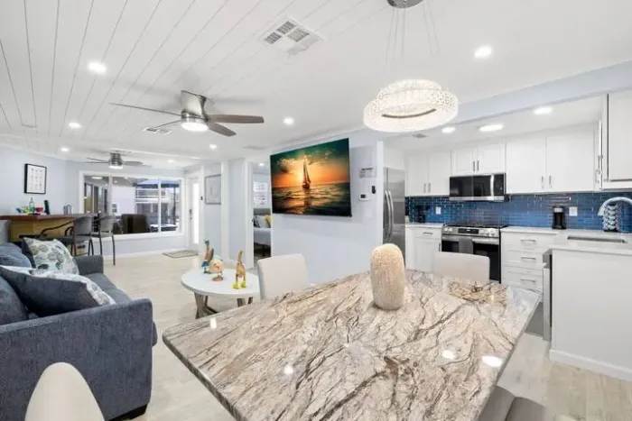 After the house smells and looks new, we start adding the cherry on top and have all the furniture and appliances ready for use. We don't want you falling down from a chair and a washer that chews your clothes up.