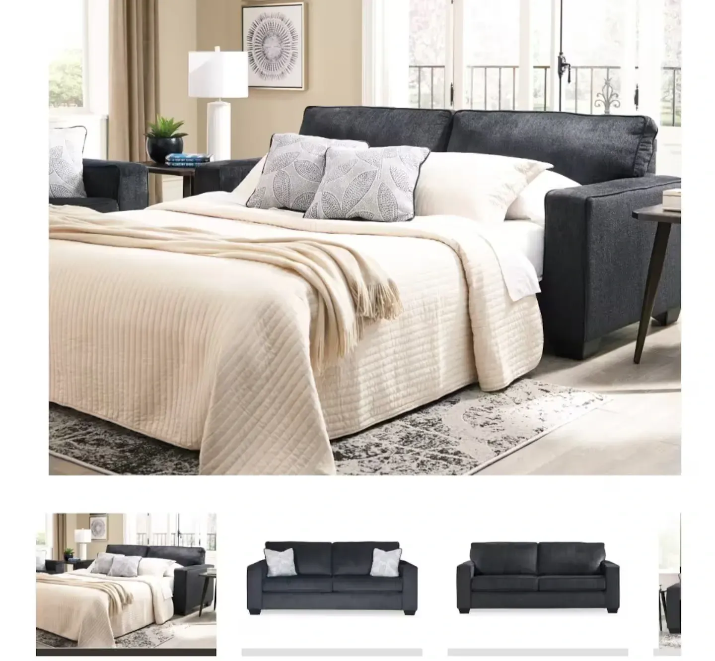 The inviting living room offers ample seating with a comfortable fold-out couch and two plush single couches, all centered around a television for your entertainment.