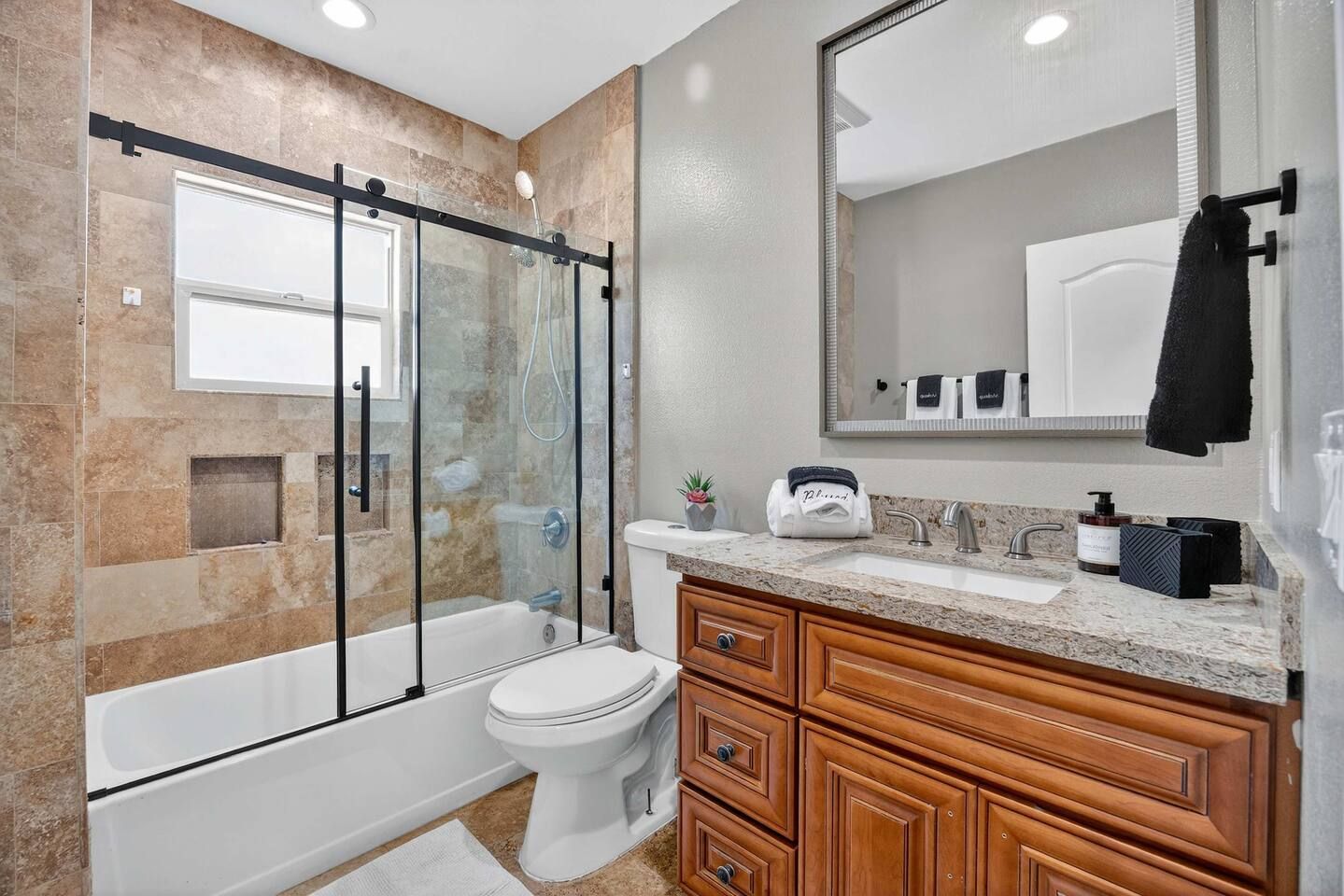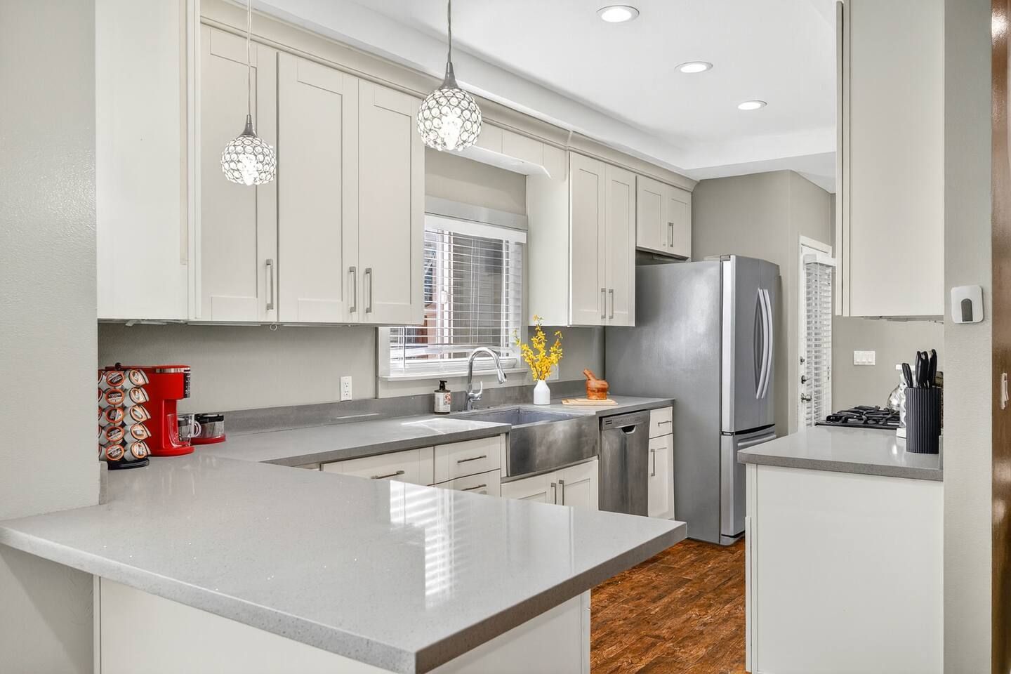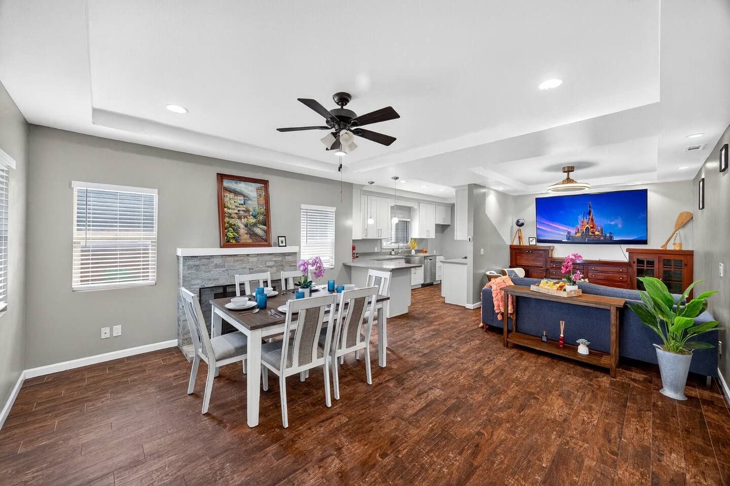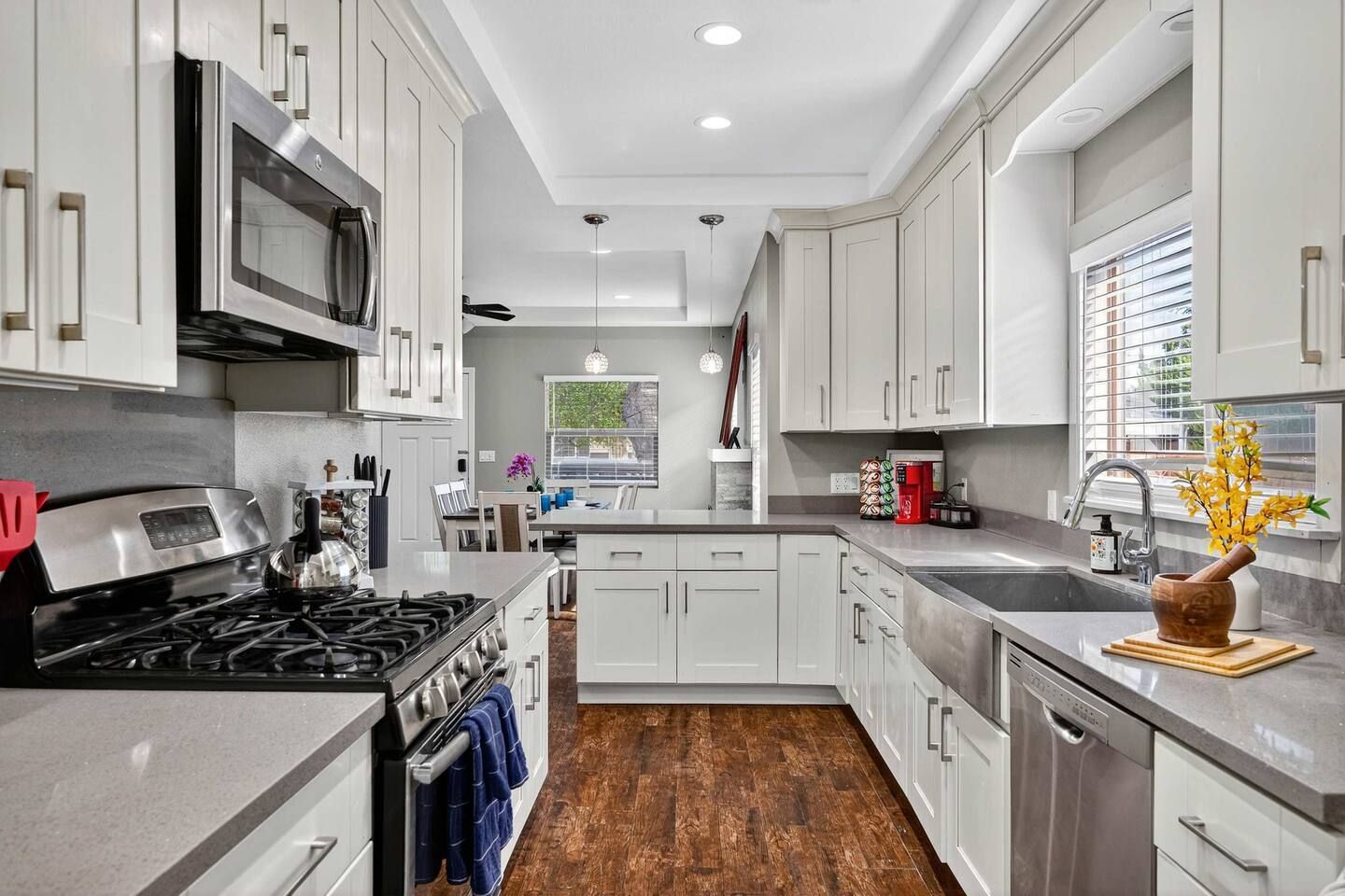 Step inside Cali Crest and discover a thoughtfully designed single-level home, perfect for your Midway City getaway. The Master Bedroom features a luxurious king-size bed, offering a serene retreat after a day of exploring. The Second Bedroom and Third Bedroom each offer a queen-size bed, providing comfortable accommodations for family or friends. Both bathrooms are fully equipped and designed for your convenience. The fully equipped kitchen is ready for meal preparation with all the essentials, including a stove, oven, refrigerator, and dishwasher. Enjoy the convenience of a dedicated dining area and a comfortable living space, ideal for relaxation and quality time. With amenities like air conditioning, free parking, and high-speed internet, Cali Crest ensures a seamless and enjoyable stay.