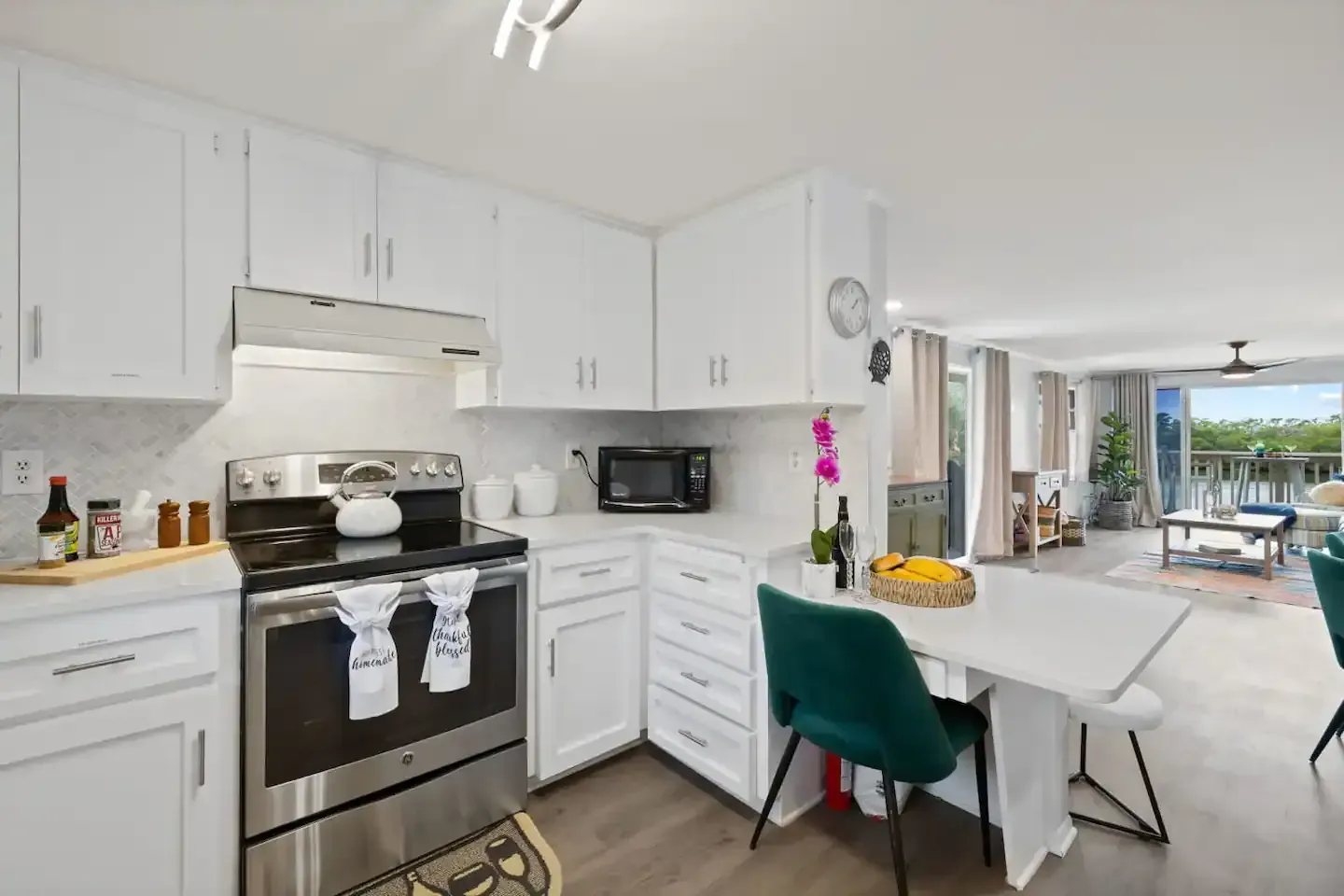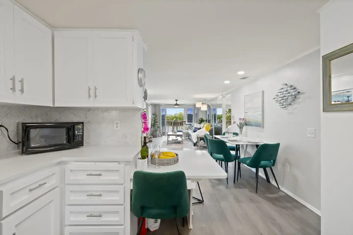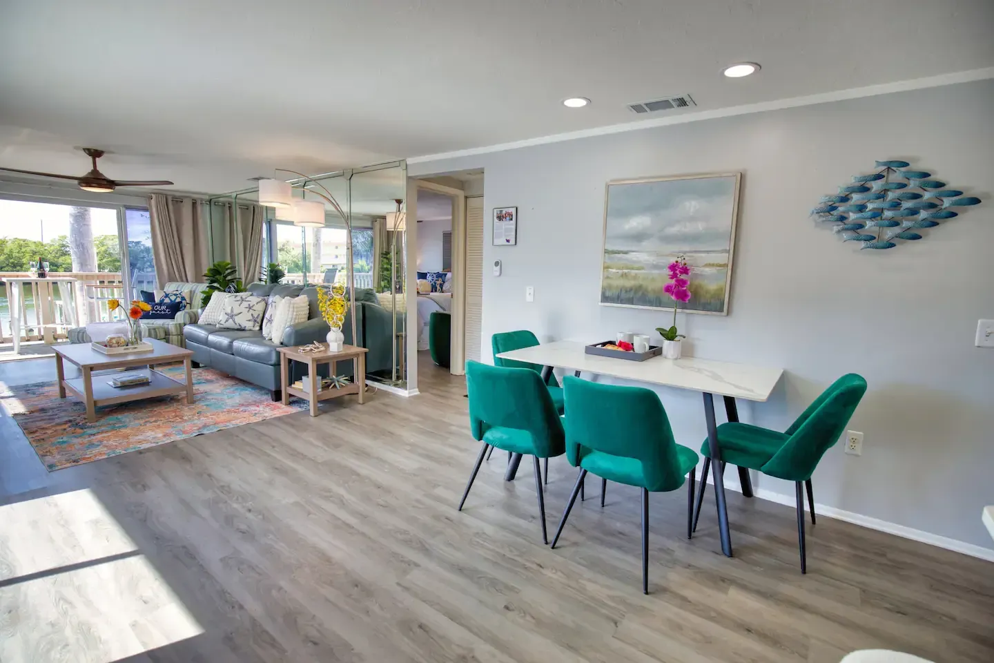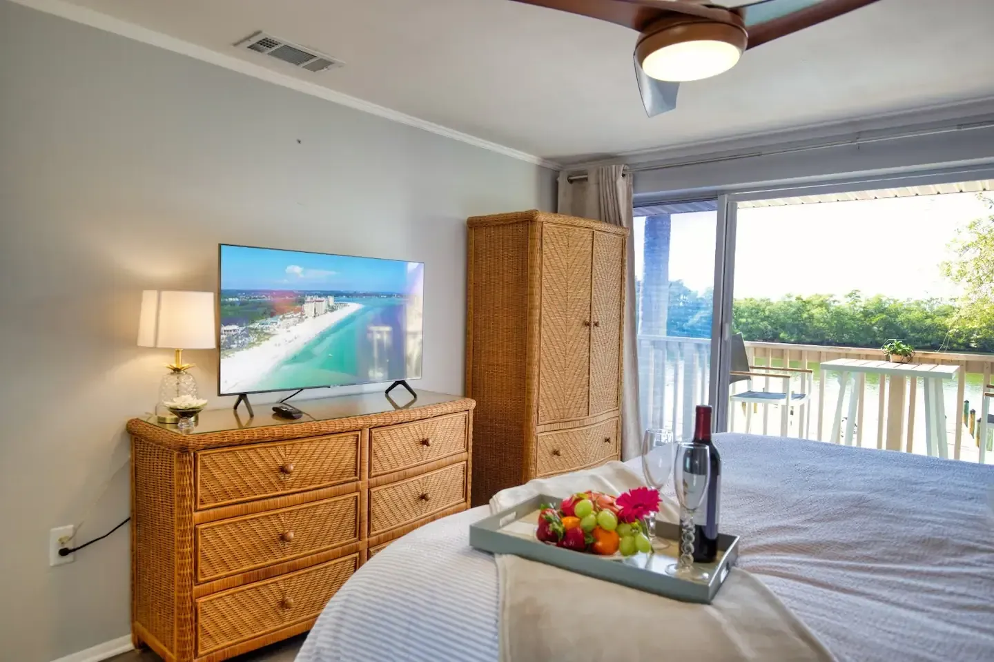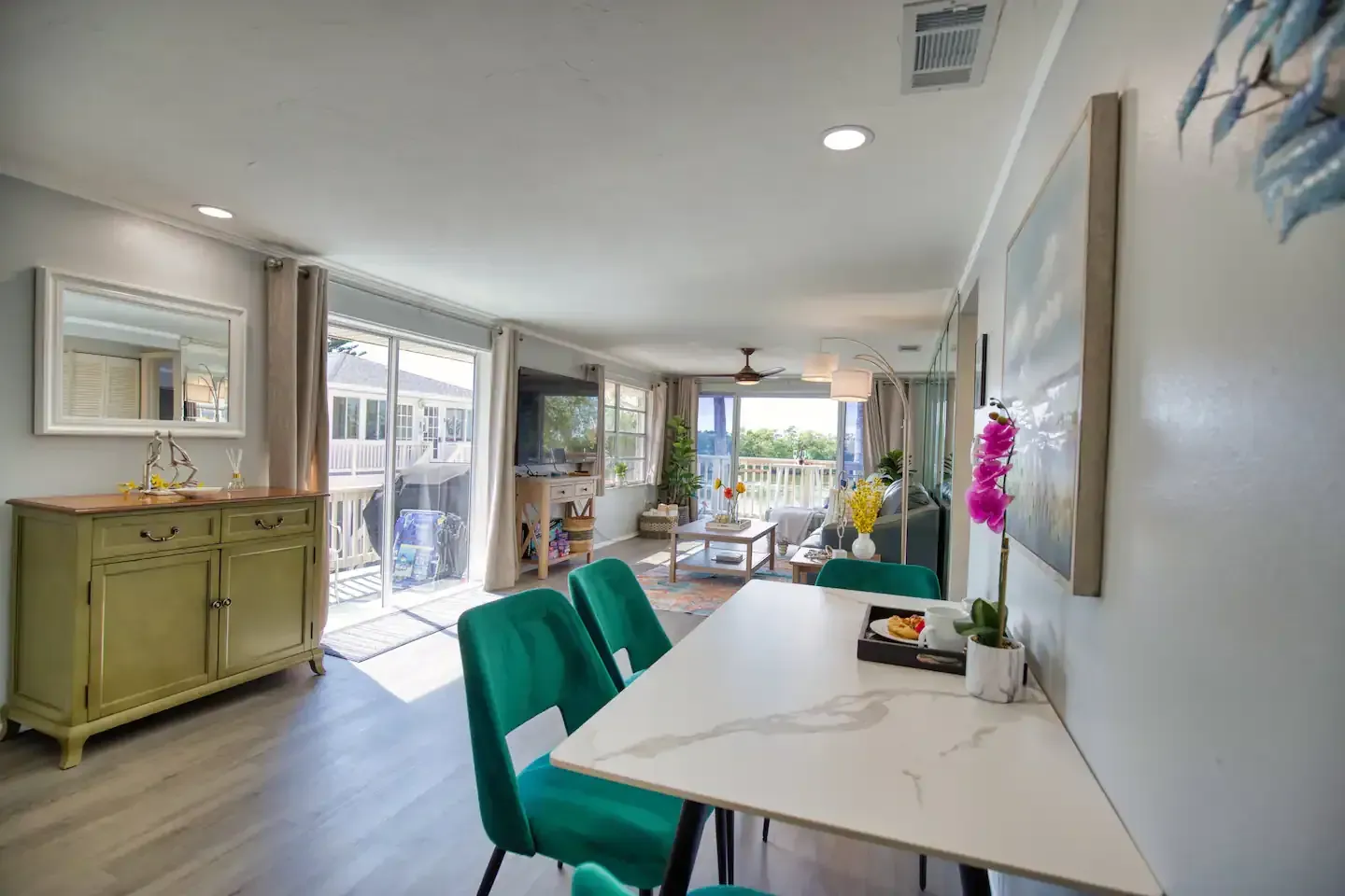 This unique 2 bedroom/ 2 bath condo is right on the waterfront in Siesta Key! It is the upper condo of a two story complex that has the most perfect view and is in an area that is quiet and feels like your own personal getaway! It comes with a full kitchen, living room, and two decks. Part of what makes it amazing is the private dock access to the Blind Pass, which will take you all the way to Sarasota Bay! Perfect for bringing your own or borrowing one of our Kayaks and exploring the Bird Keys