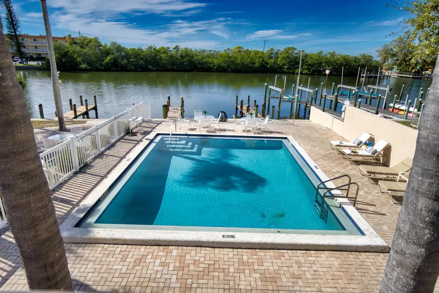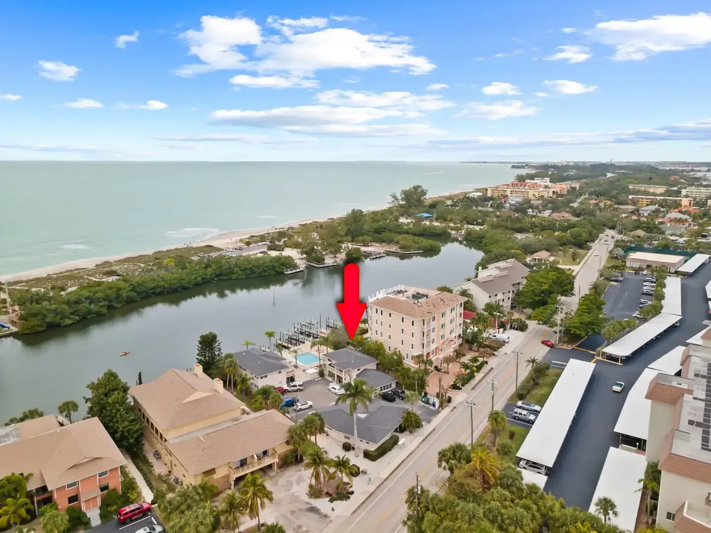 The Top unit of a two story condominium complex. The condo has two bedrooms, 2 full bathrooms, a full kitchen and a living room. The heated pool sits right behind the condo and facing the gorgeous waterfront.