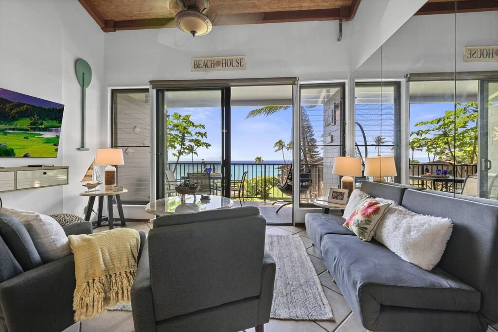 With a sprawling ocean view from every room, this little island oasis is the epitome of the dream vacation home. Wood beam ceilings and rich grainy finishes contribute to the "island beach house" character. Poly Shores is minutes from world famous Kaanapali beach and Kaapalua resort-3 miles of powder white sand, and easy access to world class golf courses, dining, hiking, snorkeling- 5 miles north of Downtown Lahaina. Or enjoy the sun, whale watching and sea turtles on the private guest beach!