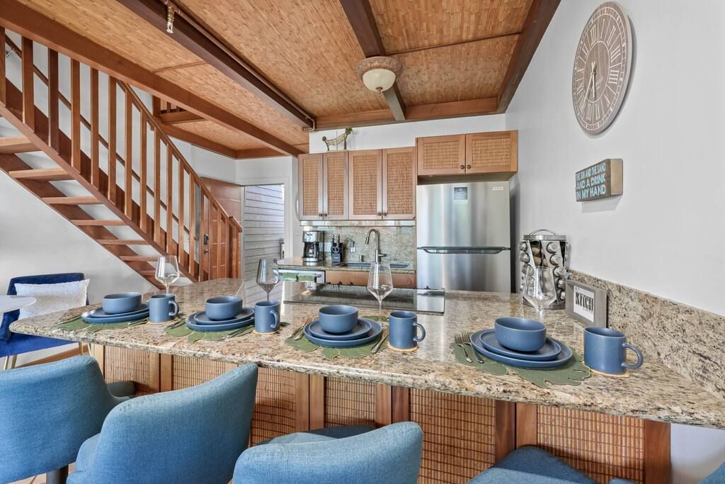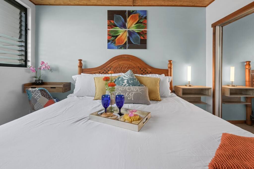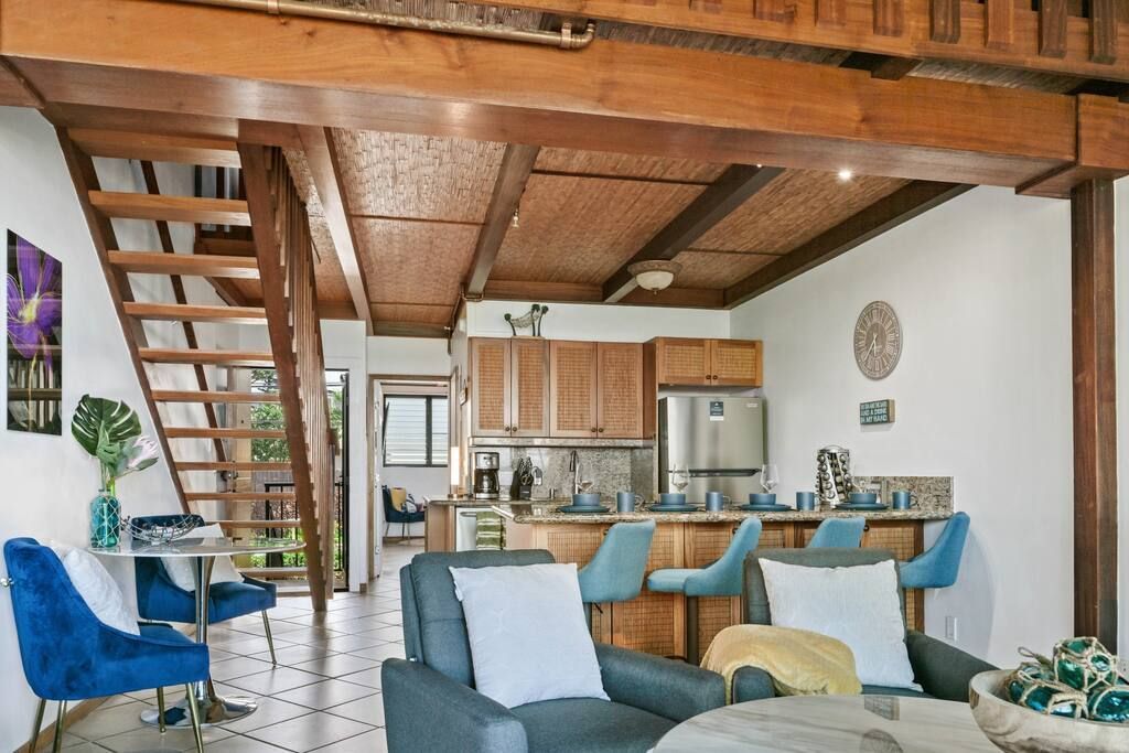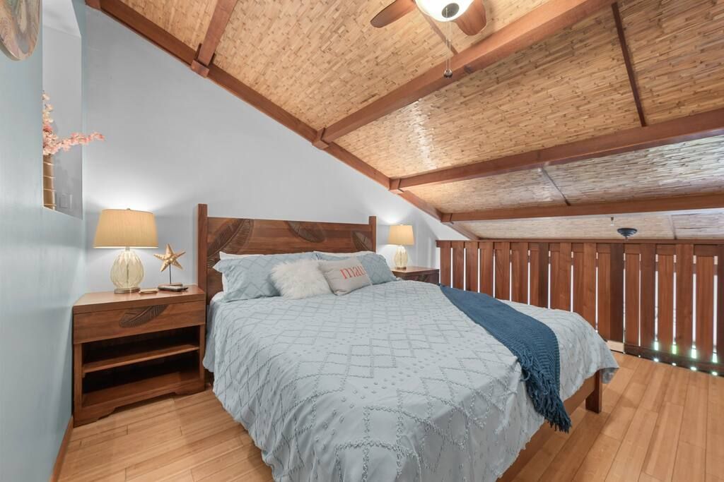 Right as you walk in, the open living area and kitchenette to the side give off such a welcoming and calming aura. Walk past the living room and onto the patio, and the direct view of the ocean completely takes over, and you feel the breeze as if you can basically touch the waves from right there! Go upstairs and you will find a cozy nook style bedroom with king size bed and a private bathroom with walkin shower. Though there are enough sleeping arrangements for up to 8 people, it is most comfortable for 6 people.