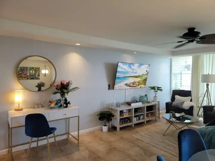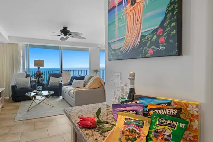 As you walk into this 2 bed 2 bath condo, you'll feel at awe by the magnificent view. The sounds of ocean waves will lull you immediately. The striking panoramic view will have you feel like you're in the endless blue ocean. Sitting on the lanai, the fresh island breeze will put you at ease in your own slice of an island paradise. Our newly re-designed and modernized space has all the amenities that you will need. Each of the 2 bedrooms has its own king bed and ensuite full bath. Laundry on site