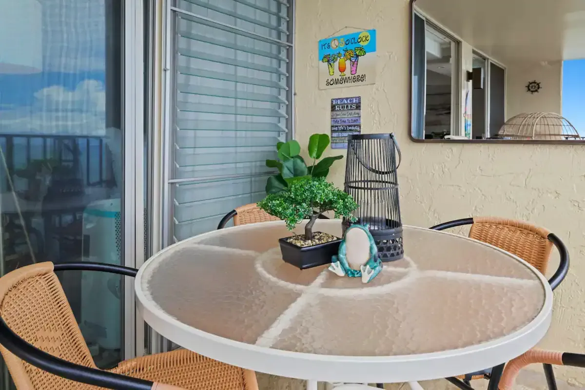 Guests have their own parking spot in the underground parking area as well as parking in the front if needed for any guests. The pool is open from 9 am to 9pm and has a barbecue area and there is even an outdoor shower. The kayak/ surfboard storage area is behind the front office.